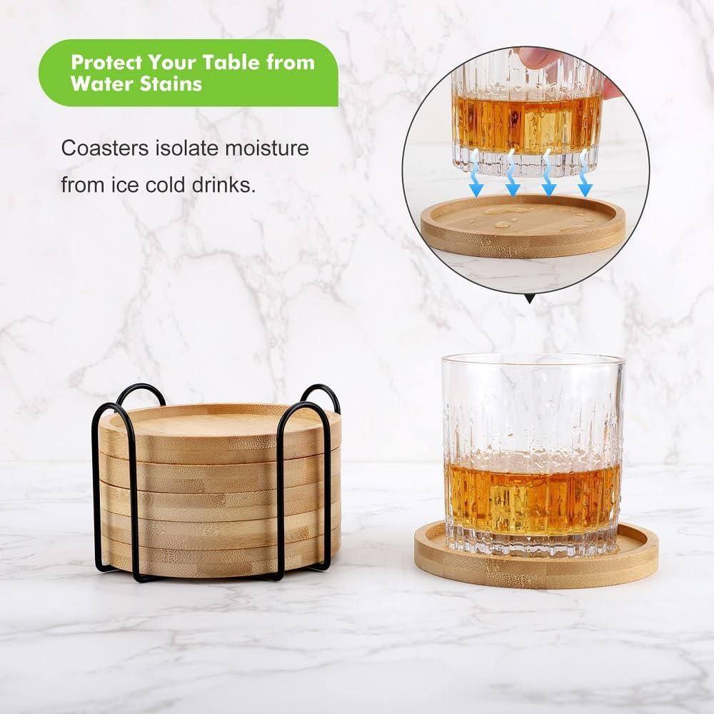 6 pièces Set de sous-verres en bambou avec support